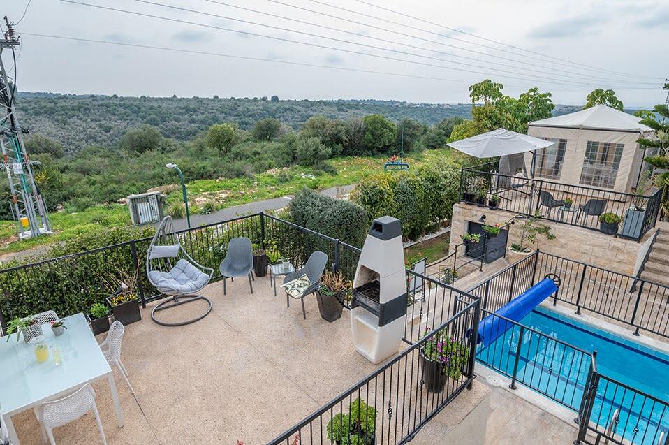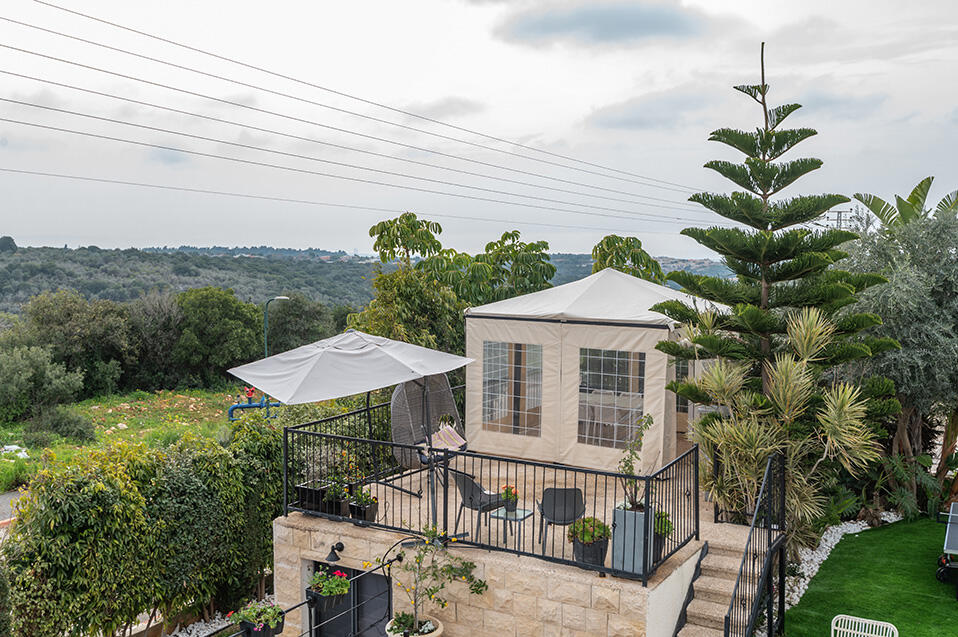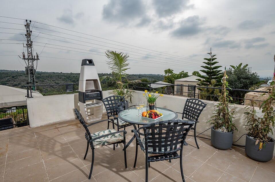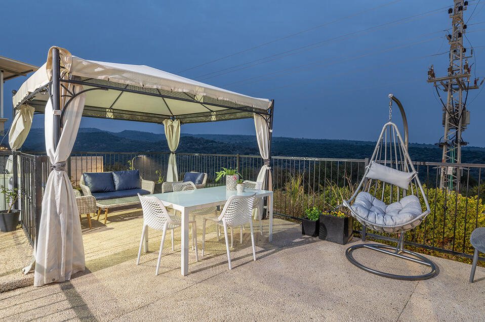 לסוויטה מרפסת נוף מרהיבה- צופה גם אל איזור החוץ של המתחם וגם אל הגליל המערבי היפה.